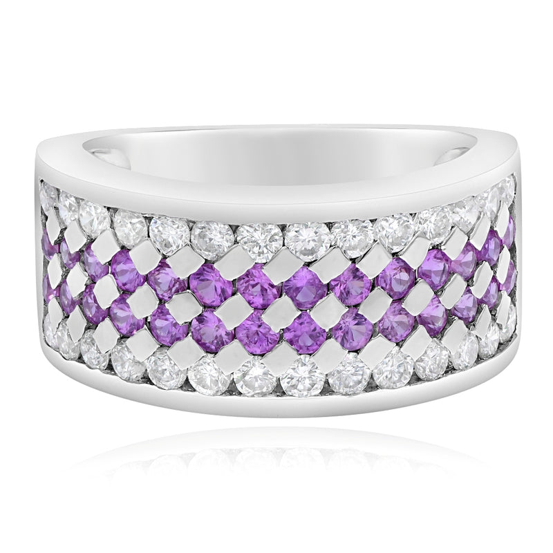 0.97 ct. Pink Sapphire & 0.9 ct. Diamond 14K White Gold Multi-Row Band