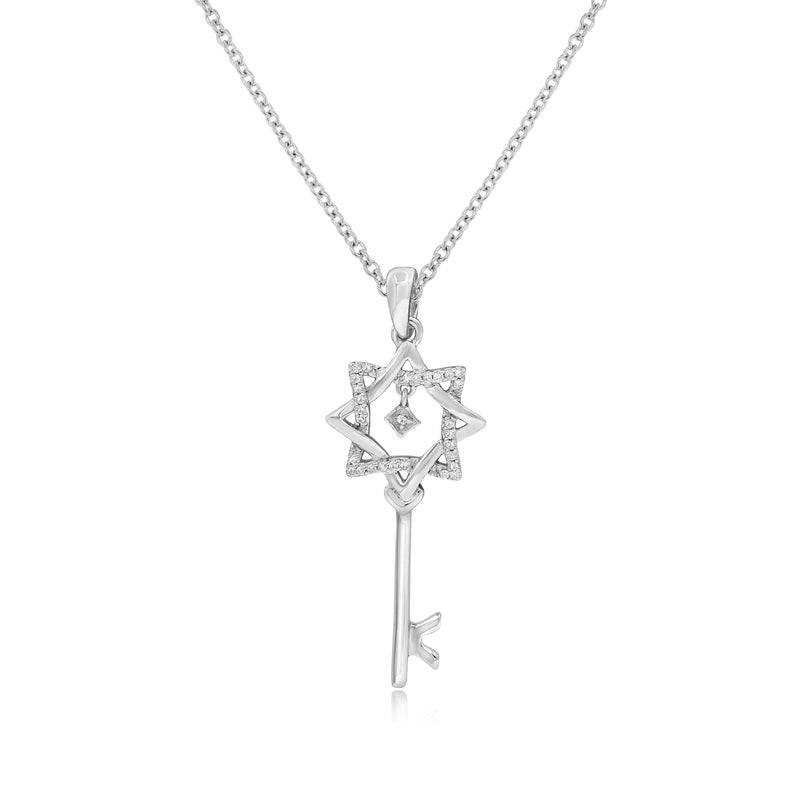 0.1 ct. Diamond 14K White Gold Star Key Pendant