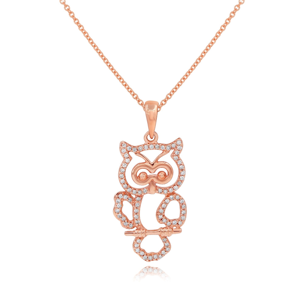 0.19 ct. Diamond 14K Rose Gold Owl Pendant