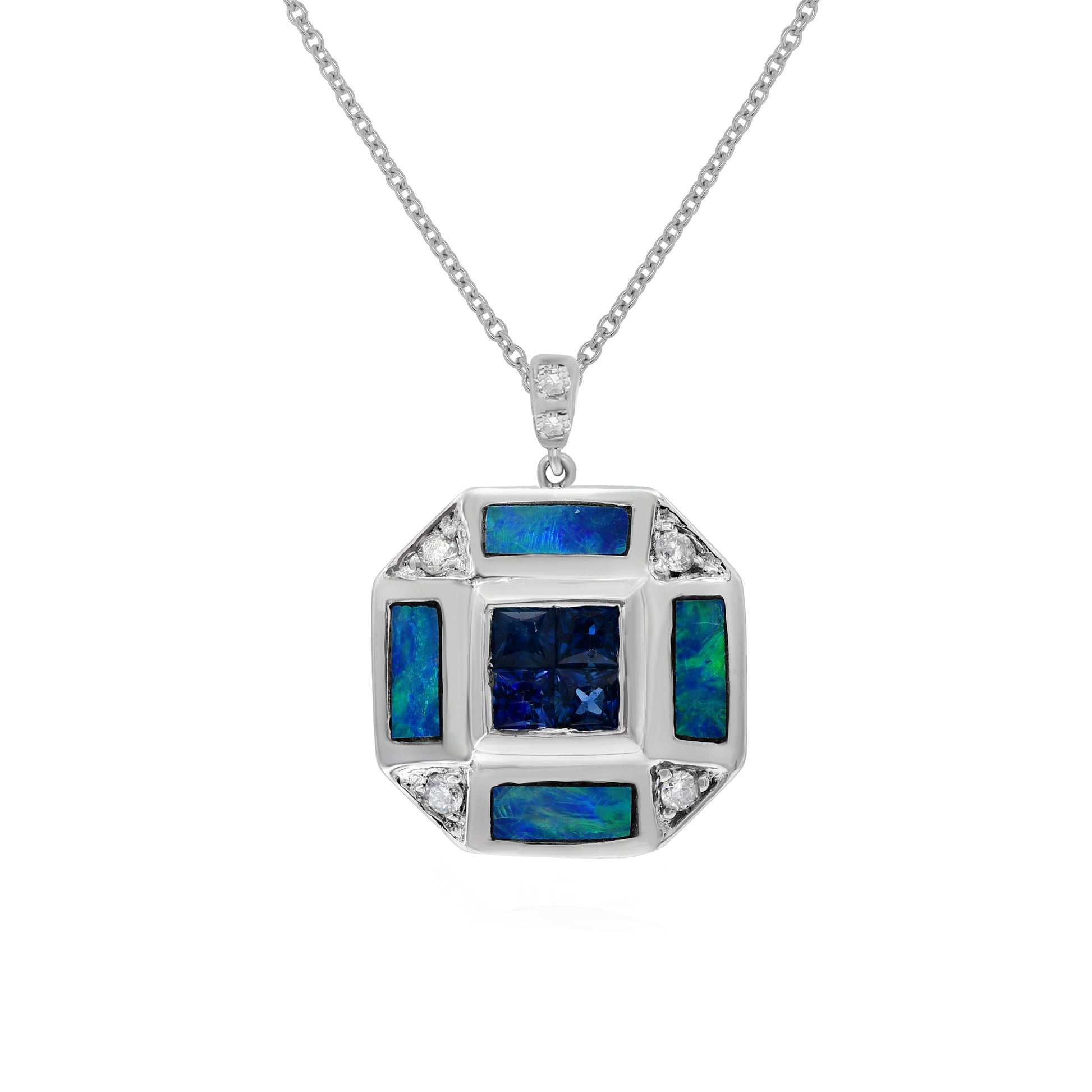 0.24 ct. Sapphire & 0.06 ct. Diamond 14K White Gold Galaxy Enamel Pendant