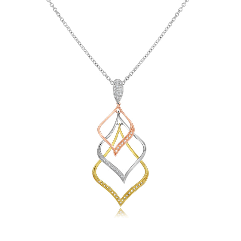 0.16 ct. Diamond 14K Three Tone Gold Triple Tear Drop Pendant