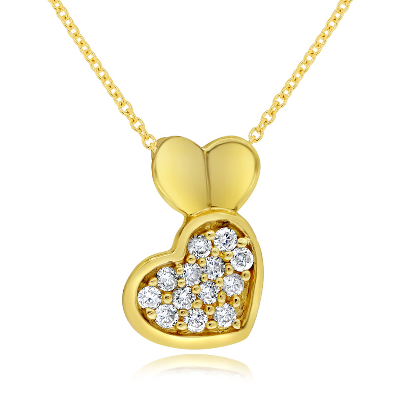 0.15 ct. Diamond 14K Yellow Gold Double Heart Pendant