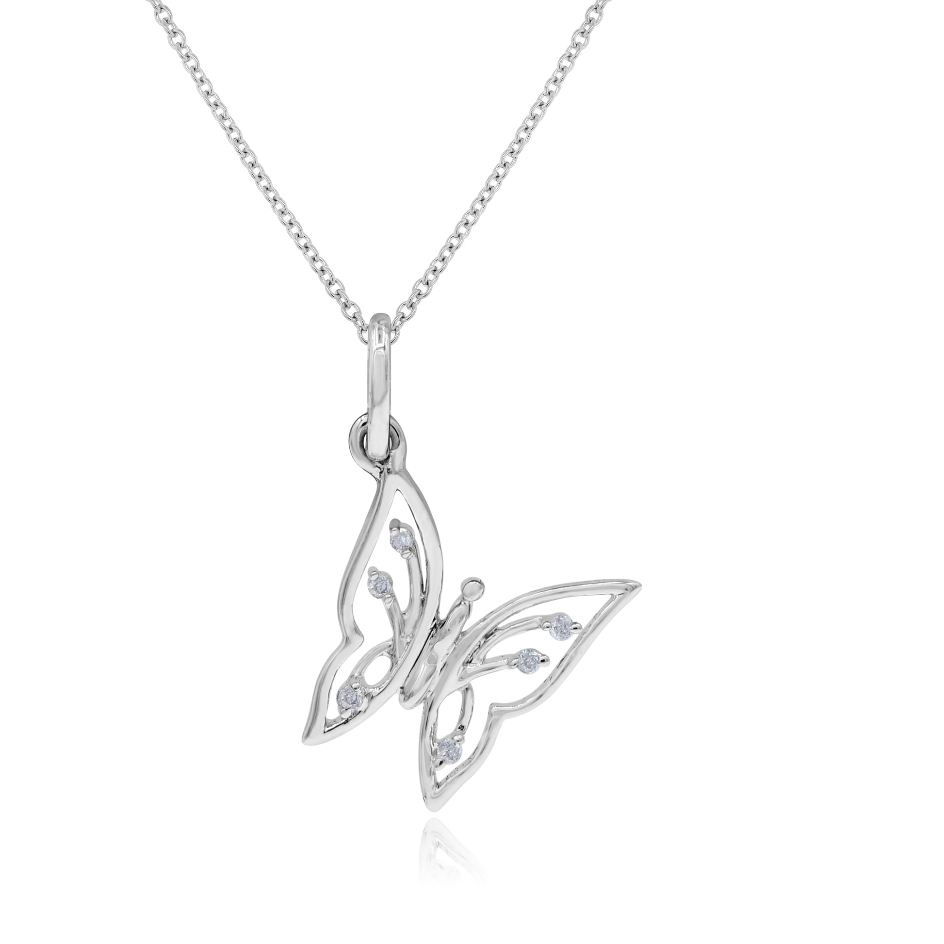 0.03 ct. Diamond 14K White Gold Butterfly Pendant