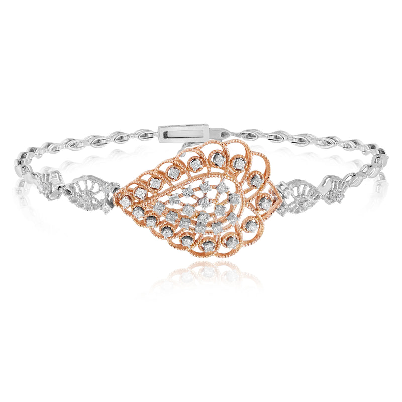 0.89 ct. Diamond 18K Two Tone Gold Leaf Swirl Bracelet