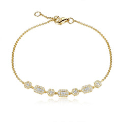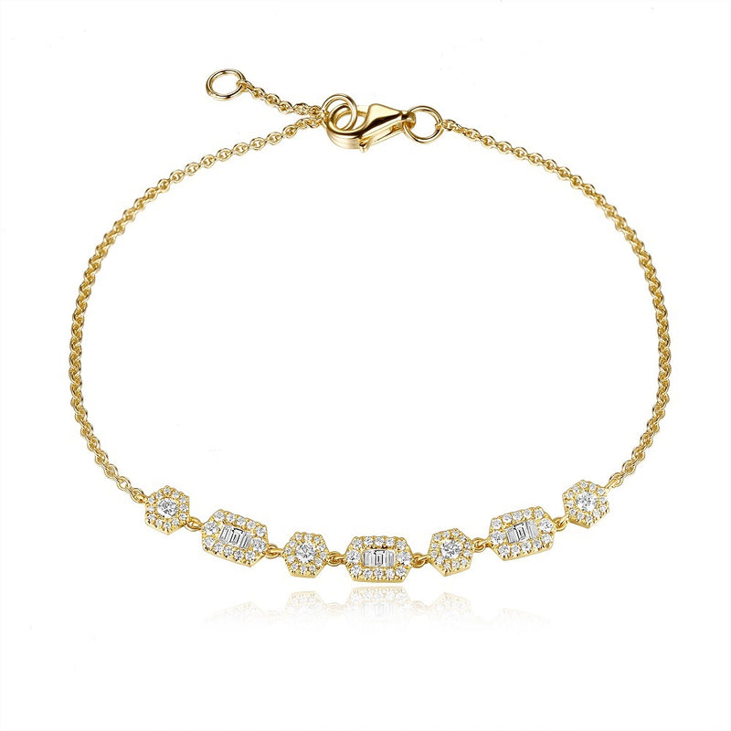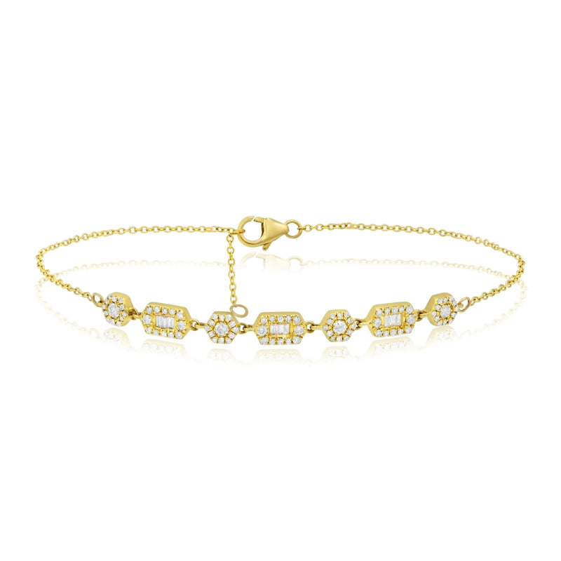 0.61 ct. Diamond 14K Yellow Gold Multi Hexagon Round & Baguette Adjustable Bracelet
