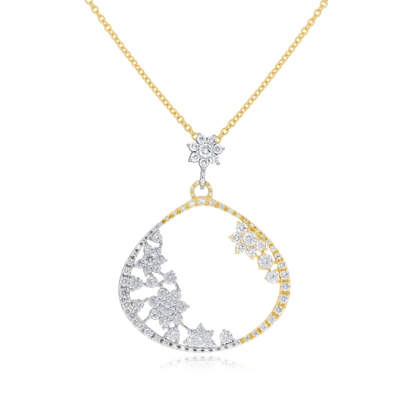 4.44 ct. Diamond 18K Two Tone Gold Open Teardrop Pendant