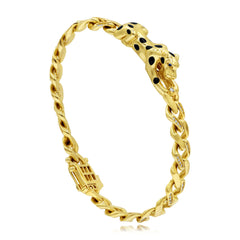 0.02 ct. Sapphire & 0.34 ct. Diamond 14K Yellow Gold Black Enamel Jaguar Link Bracelet
